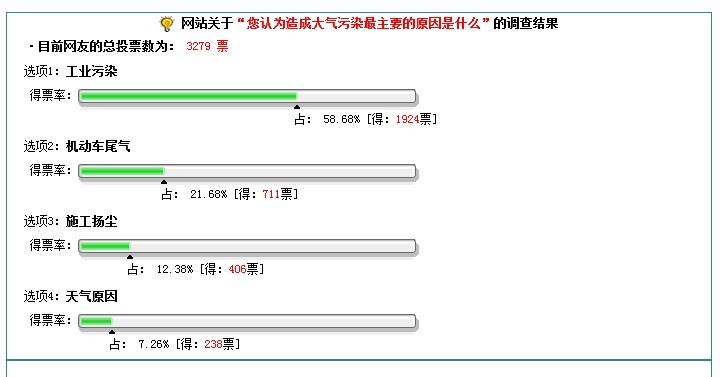 在这上个选项中,我公司本着想要看到真实、公正的调查结果,在进行投票(工业污染)后才进行结果查看,结果如图: